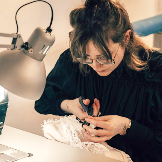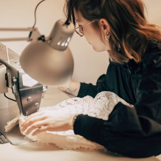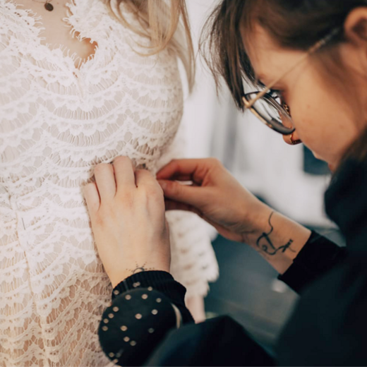 Anja Wanninger ist seit August 2021 Schnittdirektrice im Bridal Concept Store von „Kaviar Gauche“ in Berlin. Und macht für uns den Stresstest: Welche Ausbildungsinhalte aus ihrer Zeit an der Modefachschule Sigmaringen nützen ihr im Job und wo hätte sie gern noch mehr gelernt?