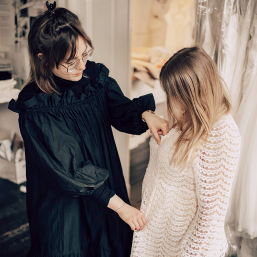 Anja Wanninger ist seit August 2021 Schnittdirektrice im Bridal Concept Store von „Kaviar Gauche“ in Berlin. Das Interview mit ihr führte die Journalistin Karin Kontny.