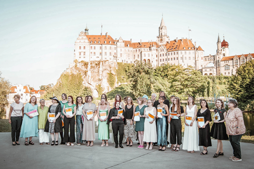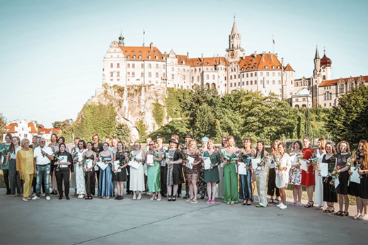 1) Die SchülerInnen des aktuellen dritten Jahrgangs der Modefachschule Sigmaringen feierten am Karls Hotel und vor der Kulisse des Sigmaringer Schlosses ihren erfolgreichen Abschluss der Ausbildung zur/zum ModedesignerIn und/oder zur/zum MaßschneiderIn. (Anmerkung: nicht alle AbsolventInnen sind abgebildet)