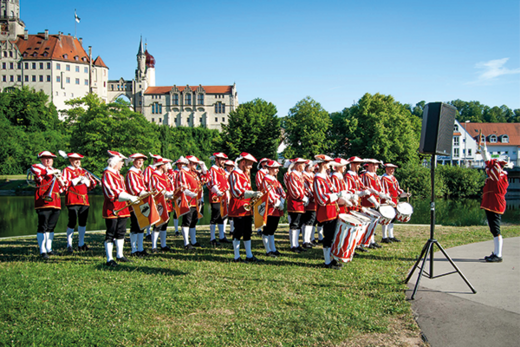 3) Im vergangenen Jahr krönte das geschichtsträchtige Hohenzollerische Kürassier-Regiment Sigmaringen das Abschluss-Event der Modefachschule Sigmaringen. Und auch in diesem Jahr verband die Feier des Abschlussjahrgangs den Blick in die Zukunft mit einer traditionsreichen Institution: Der Sigmaringer Fanfarenzug spielte auf und überzeugte nicht nur mit musikalischer Vielfalt, sondern begeisterte auch mit seinen traditionellen Kostümen.