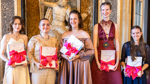3) Die besonderen Gesamtergebnisse einiger AbsolventInnen (v.l.n.r.) sprechen für sich: Die Absolventinnen Maike Goldkuhle, Julia Bilke und Valentina Bury verlassen die Schule als Jahrgansbeste mit einem Gesamtnotendurchschnitten zwischen 1,2 und 1,5 sowie Auszeichnungen für herausragende Werte in den Bereichen Pünktlichkeit, Zuverlässigkeit und (zusätzlichem) Engagement. Insgesamt 167 Zusatzqualifikationen, die jeweils mit Zertifikaten bestätigt wurden, konnte Theresa Gahr vorweisen, genau 91 Zusatzzertifikate erreichte Marit Missel.